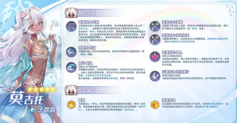 玛娜希斯回响法露露技能是什么?法露露是玛娜希斯回响夏日活动新上线的一个角色,有小伙伴想知道法露露技能是什么,下面为大家介绍一下,感兴趣的小伙伴一起来看看吧!