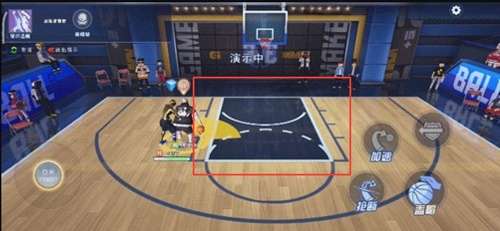 1、在全民大灌篮中,玩家需要控制方向键躲过别人的阻挡,来到篮板下,如下图所示。