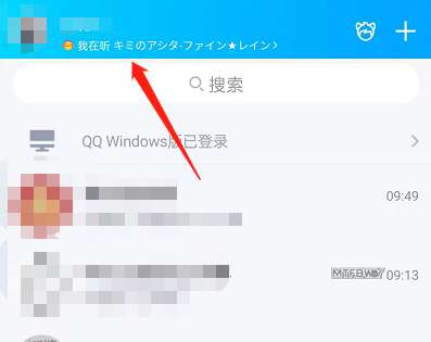 1、打开QQ,查看到自己的听歌状态,点击该状态。