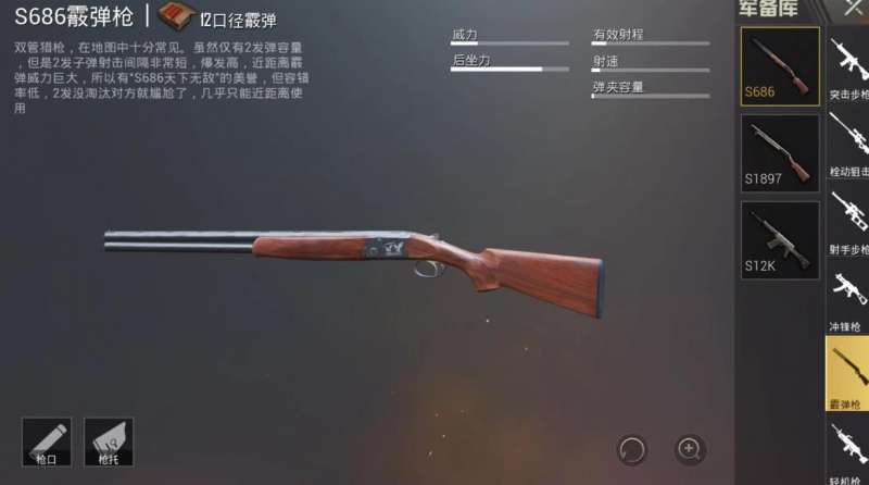 第三把推荐的是S686,这是一把双喷霰弹枪,比较适合用作副武器。在面对敌人无护甲的情况下可打出两百二十五的伤害,在面对一级甲时可打出一百五十八的伤害。在面对敌人装备二级甲时,则可以打出一百三十五点的伤害,面对三级甲时只能打出一百零一的伤害。玩家在对决的时候,可以在远战时期多使用其他的枪械,来消耗敌人的血线。之后慢慢靠近别人,或者被别人靠近的时候,就可以立刻掏出S686对其进行射击。