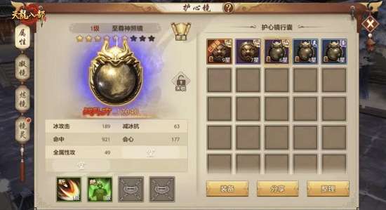 首先,少侠们需要知晓,护心镜的属性和技能是可以通过合成而继承的,因此,我们要保证每一次合成的护心镜,属性与技能是适合我们当前的使用门派。因此,切忌随意合成。同时,高品级的护心镜相合成,合出高级品级的成功概率就越大哦!