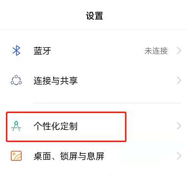 1、打开设置,点击个性化定制。