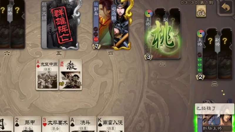 更多的也就是给自己一个增益,也不是不可以,但是这个收益量就没那么大了。所以克复中原本身就是一个适合在大规模亮将之后再涌出来的锦囊牌。如果八个人全都亮了并且都活着,一般也就给自己势力的人用一下克复中原,也就是两三个对象。