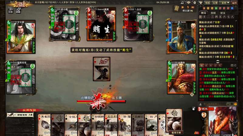 反观一选项就完全不是这样,虽然说视为使用一张杀,可能也就抵消敌人一张闪,也就拉一点牌差而已。但是你要考虑到这是在自己回合内,如果你和队友对一个对象裸出两张杀,它不会有那么多余地去留多张闪。回合内甚至自己还有一张杀可以出,这在残局是非常恐怖的效果。