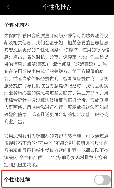以上这些就是小编给大家带来的剪映取消个性化内容推送教程分享,大家看完这篇教程后应该能知道怎么操作了,希望对大家有所帮助,更多相关资讯内容敬请关注十大评测网。