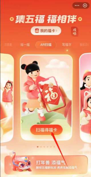 接着,在AR扫福界面,可以看到下方有个扫福攻略,点击打开。