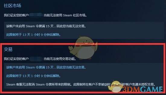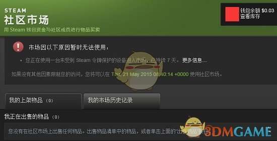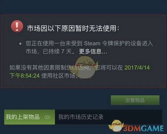 3、如果你登录steam的设备受令牌的保护不超过7天,那么7天内将无法进行交易和使用市场,而且清除浏览器缓存和使用其他的浏览器或者重装steam都将触发该限制。因此可以尝试7天之后再次登录,保护次数达到了就可以进入社区了。