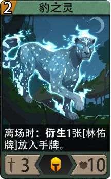 -豹之灵(卡组初始),2费3攻10血,离场时:衍生1张[林佑牌]放入手牌。