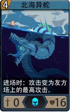 新效果:进场时:攻击变为友方(双方)场上的最高攻击。