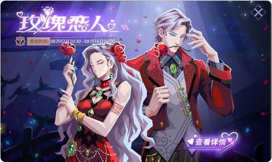 活动内容:活动期间,七夕专属皮肤[玫瑰恋人 星]与[玫瑰恋人 辰]限时开启售卖。同时开放售卖的还有对应英雄[灾厄药剂师]与[缚法者]。
