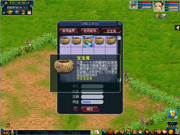 这里就建议我们的新手玩家们在牧场中放置合适的宝宝窝来养殖,这样就可以获得比较客观的收益啦!刚开始的时候,我们可以养容易养的和比较多人需要的动物。比如说,孔雀、鸳鸯和鸵鸟等这些鸟类,或者是老虎、垂耳兔和树袋熊这些哺乳类的动物。我们怎么去获得宝宝窝呢?首先我们可以在二黑子那购买或者是完成宝宝窝的任务。第二种方法是我们可以买其他人的宝宝窝;第三可以使用牧场的积分来换取宝宝窝;另外动物们的繁殖也可以获得宝宝窝;最后带着动物出游在别人的牧场里寻宝也有可能获得宝宝窝呢!