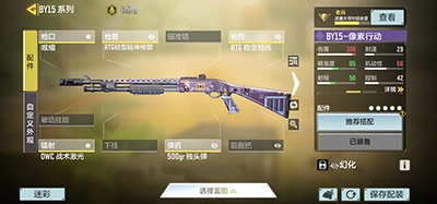霰弹枪建议选择初始的BY15,初始即可近身一枪秒人,在拱门区域有很大的发挥,配置推荐如图,另外建议在设置中选择不自动开镜,腰射模式。也可以选择M1887,也是可以一枪秒人。下面是小编的配件: