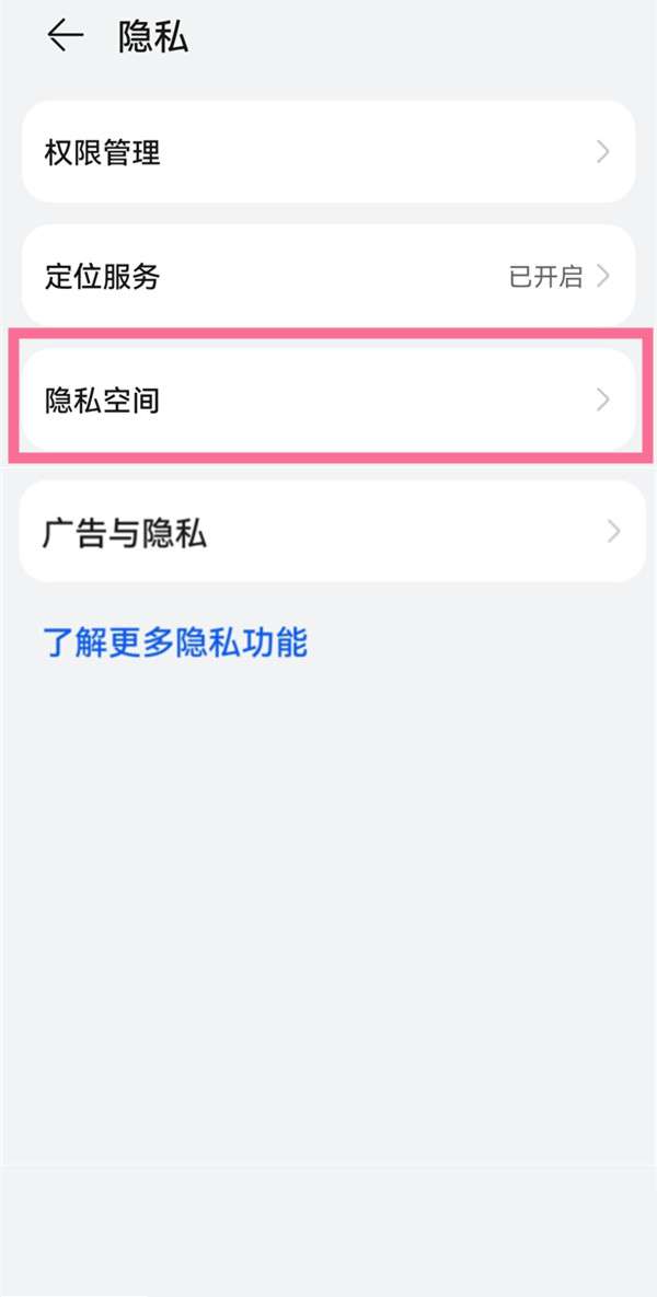 2、选择【隐私空间】选项。