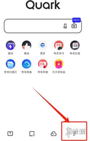 1、首先打开夸克浏览器,点击右下角的三横线图标。