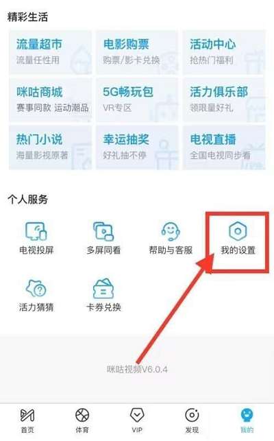 1、首先,打开咪咕视频,进入右下角我的界面,点击“我的设置”(如图所示)。