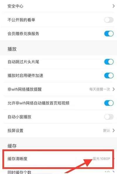 2、然后找到“缓存清晰度”,点击进入(如图所示)。
