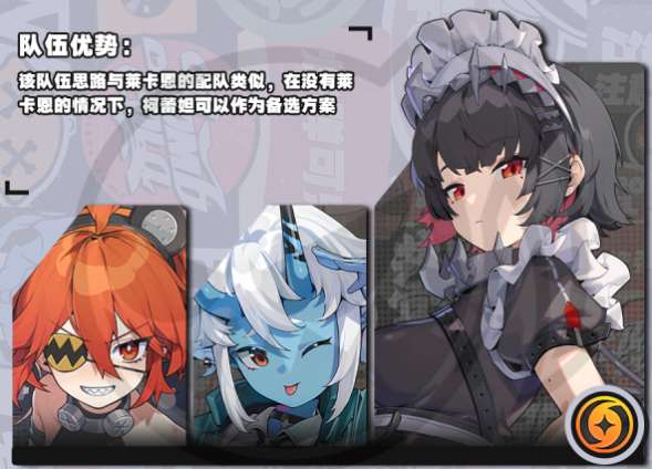 该队伍思路与菜卡恩的配队类似,在没有菜卡恩的情况下,柯蓄妲可以作为备选方案、