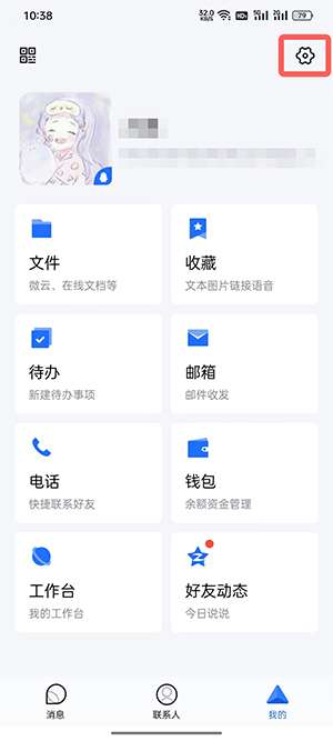 1、在手机TIM的【我的】页面点击右上角齿轮【设置】进入TIM设置中;