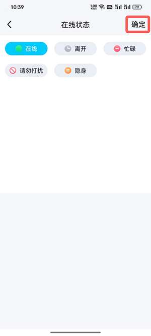4、选择需要设置的在线状态,选择后点击右上角【确定】;