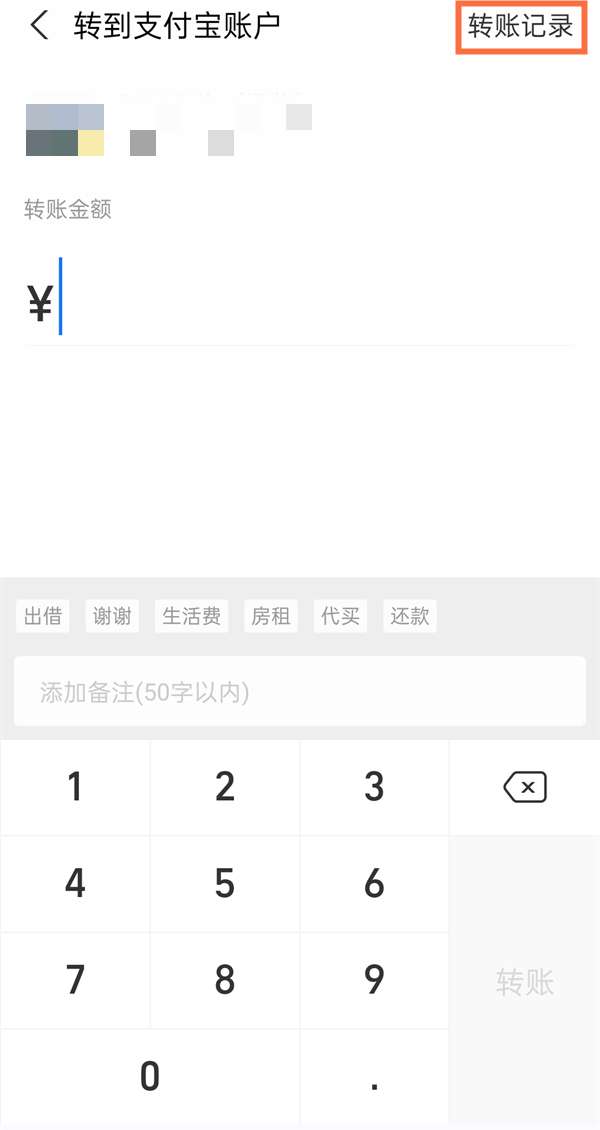 3、在转账页面,点击转账记录。
