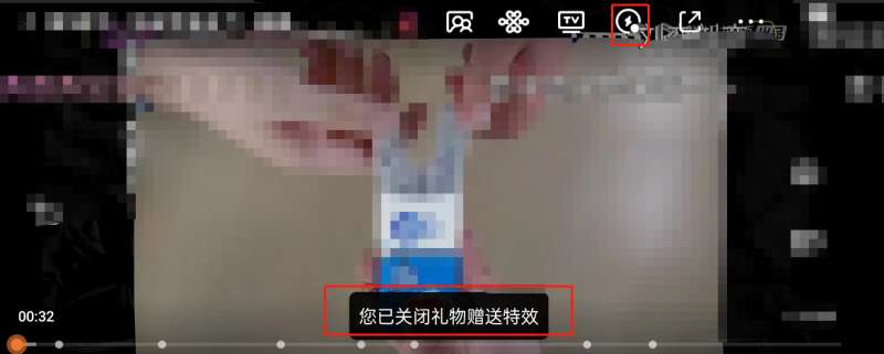 3、接着,点击该图标至白色,跳出“您已关闭礼物赠送特效”即可。
