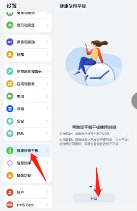 1、打开设置,选择【健康使用平板】。
