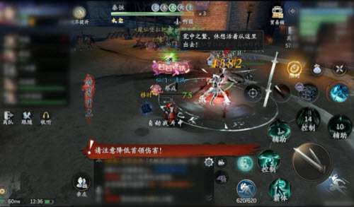 5、最终我们前往叛军根据地,对阵第三关的BOSS也就是叛军统帅秦业。BOSS的一技能【登锋蹈刃】将会随机点名锁定一名玩家和一名挡刀玩家,会出刀对点名玩家造成巨额伤害。解决方法也非常简单,挡刀玩家靠近被点名的玩家即可大幅降低BOSS造成的伤害。