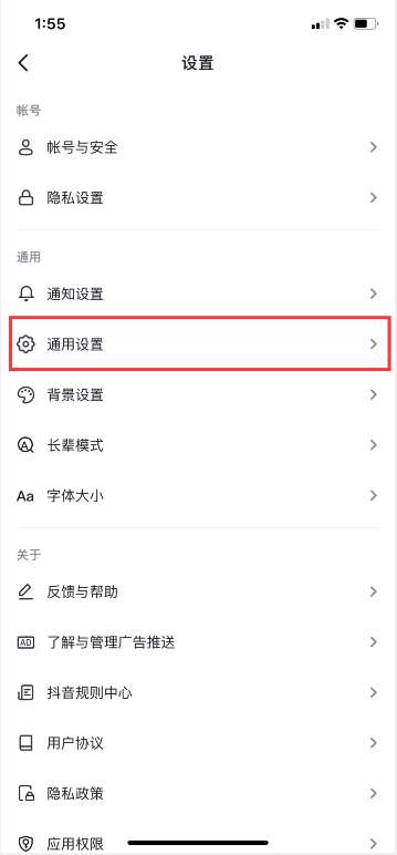 3、在设置中点击通用设置。