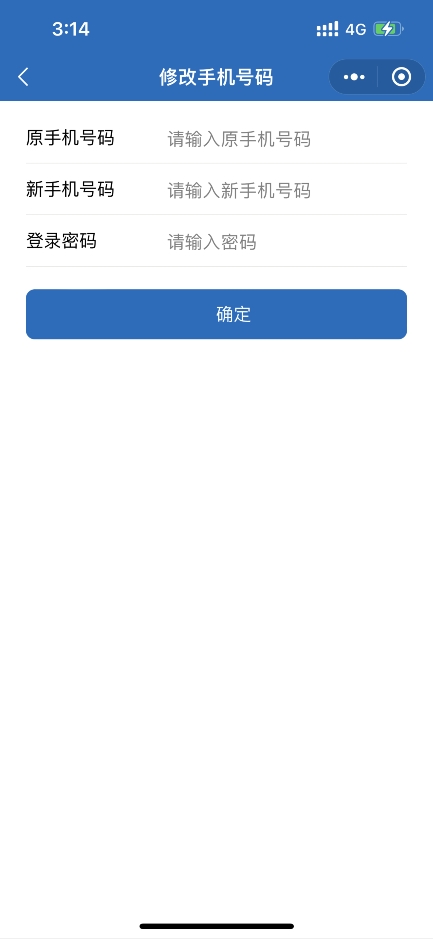 3、按照步骤输入原先手机号码,再依次输入新手机号码以及密码,点击确定即可