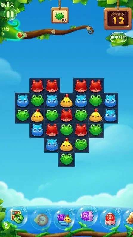 首先,第一步交换中间的小鸡和狐狸,这样我们就会得到两个魔力鸟。接着交换两个魔力鸟,就会将画面上所有的小动物全部消除掉。就会出现第一个我们要收集的第一个金豆荚,然后交换左边中间的小鸡和狐狸,会将金豆荚移动到最右侧的一行,接着任意交换动物来收集到第一个金豆荚就可以了。