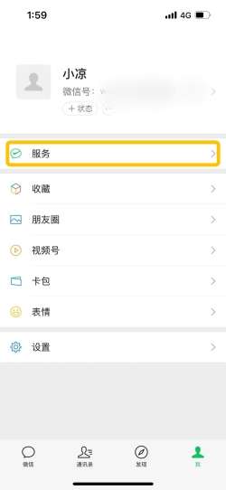 2、接着选择“服务”,这是微信为你提供的各项便捷功能的集合。