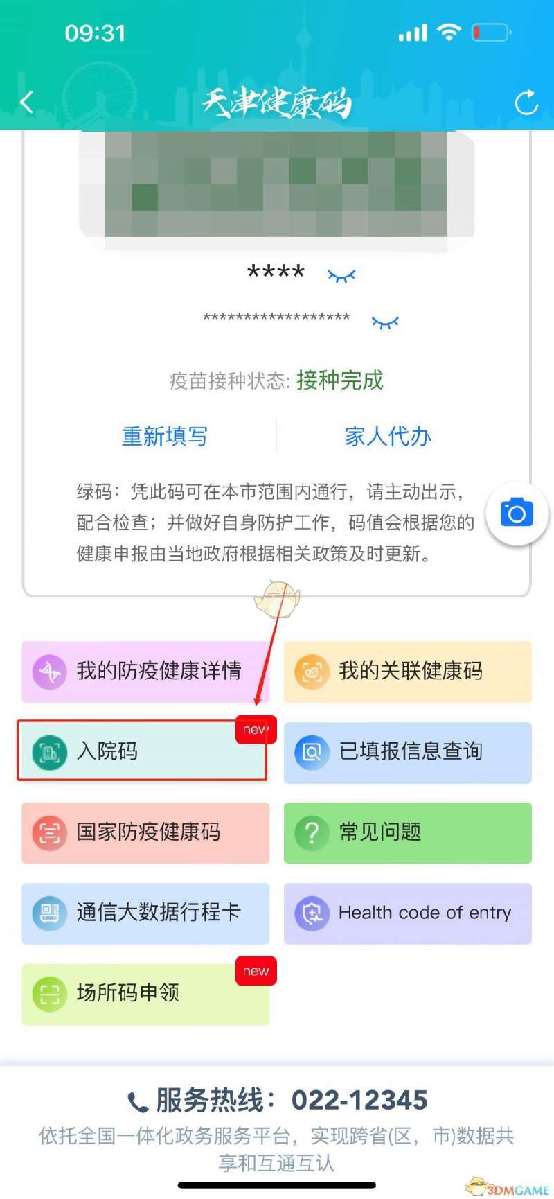 2、进入页面后下滑至最下方,点击【入院码】