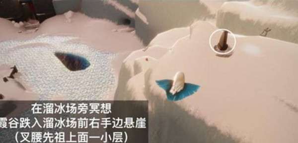 今天要回忆的先祖在霞谷的任意的赛道终点,神庙门左侧看到台棚子下面,我们点亮先祖回忆收集的过程,这样我们就完成第二个任务了;