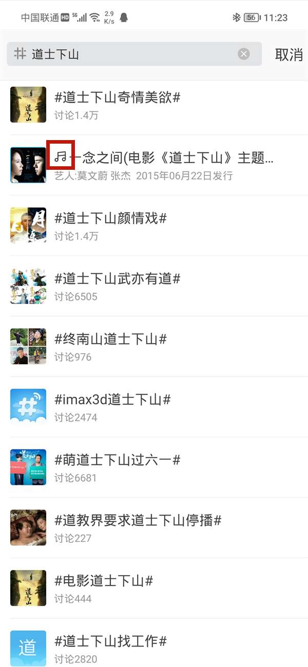 3、搜索想要分享的音乐后,找到带有音乐图标的歌曲后点击发送即可。