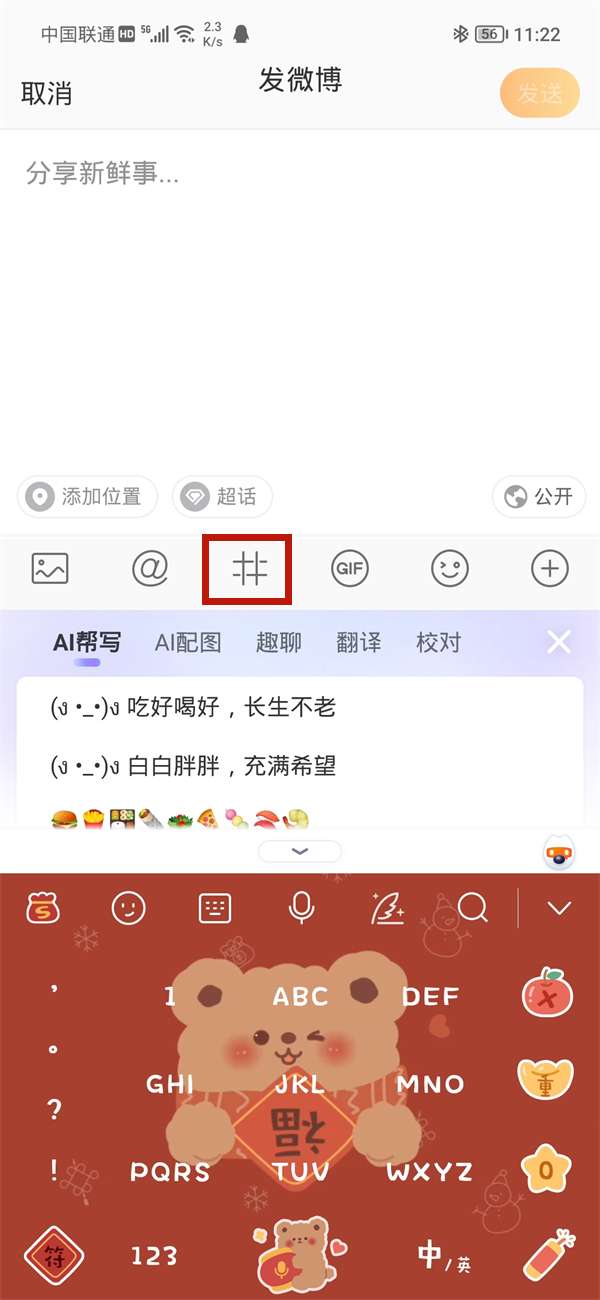 2、找到#号图标。