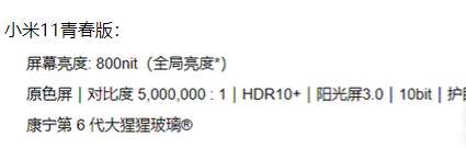 小米11青春版前后双面覆盖的都是康宁大猩猩第六代玻璃盖板(非Victus),而小米11青春活力板则降级为第五代玻璃。