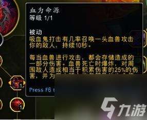 血为命源(旧翻译:鲜血就是生命)DKT的血兽造成累积伤害的50%,邪DK的血兽造成累积伤害的25%。