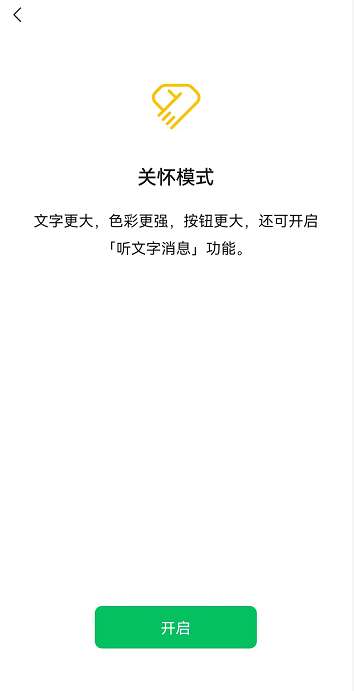 3、点击开启关怀模式,这时微信需要重启才能使用该功能。