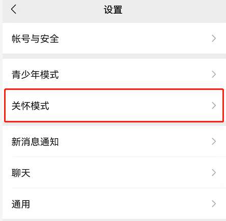 2、在设置中找到关怀模式进入。