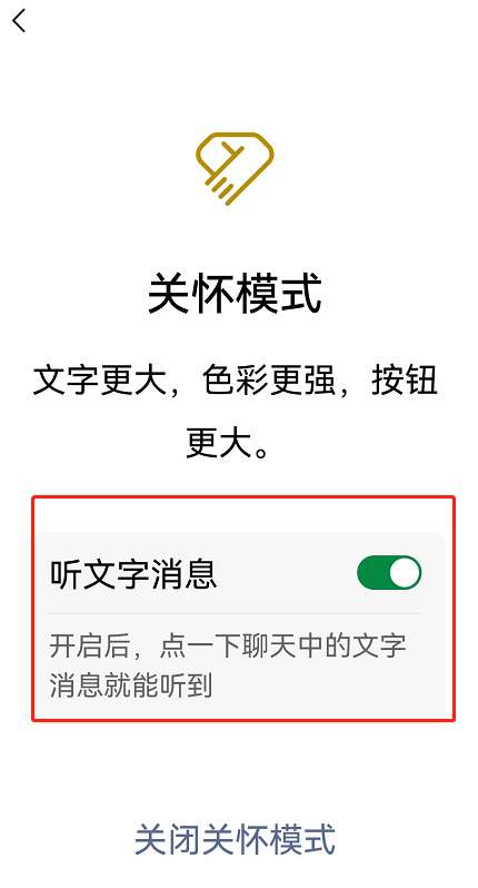 4、重启成功后在听文字消息右侧,点击按钮即可开启。