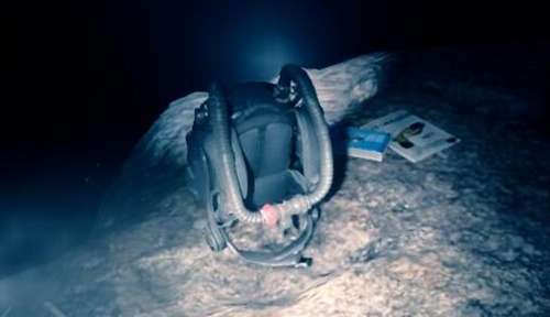 跟电击枪一样,在海边洞穴中,使用斧子把洞口模板砍碎,沿着左侧进入之后就能在找到呼吸器。