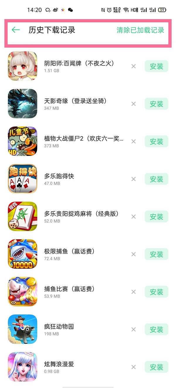 2、找到右上角的时钟,选择【历史下载记录】,选择想要找回的应用,点击安装即可。