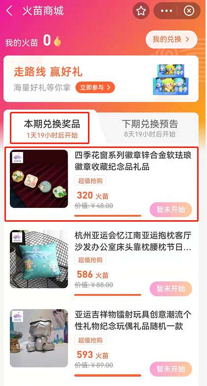 3、在火苗商城中可以看到奖品兑换时间、所需火苗数,选择想要兑换的奖品进入。