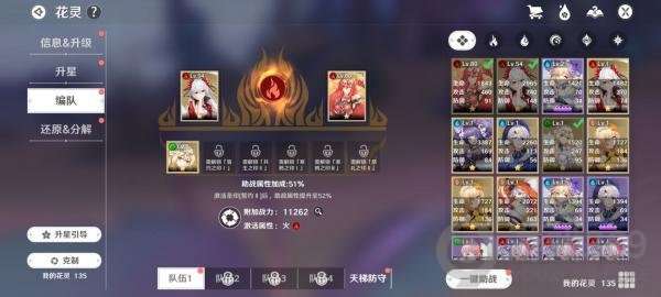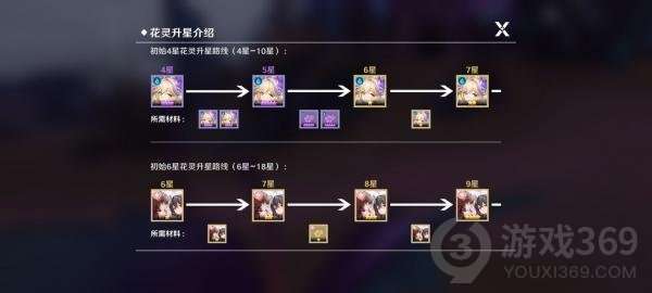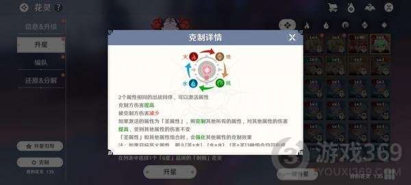 ●花灵升星:选择预升星的花灵,再从列表中选择对应个数、星级、属性的花灵作为消耗品,即可对指定花灵进行升星。星级越高,花灵的各种属性、能力越高。每次升星所需消耗的花灵各不相同,具体可参照升星引导操作!