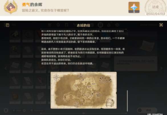 任务需要分现实里的多天完成,完成全部任务后第二天,来到下图的营地位置,可以找到志琼留下的信和绘制的地图,同时获得成就。