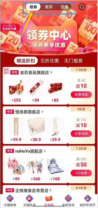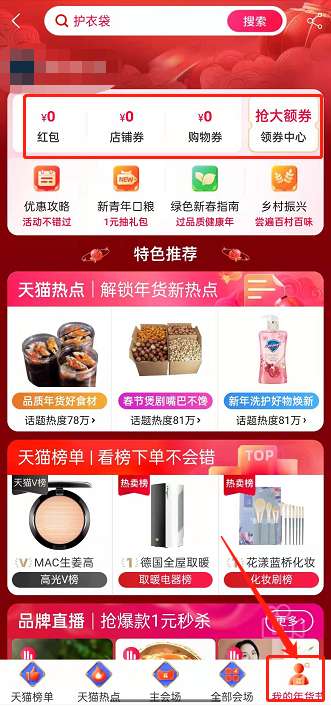3、点击下方的【我的年货节】,你就能看到自己领取的优惠券和更多特色推荐。