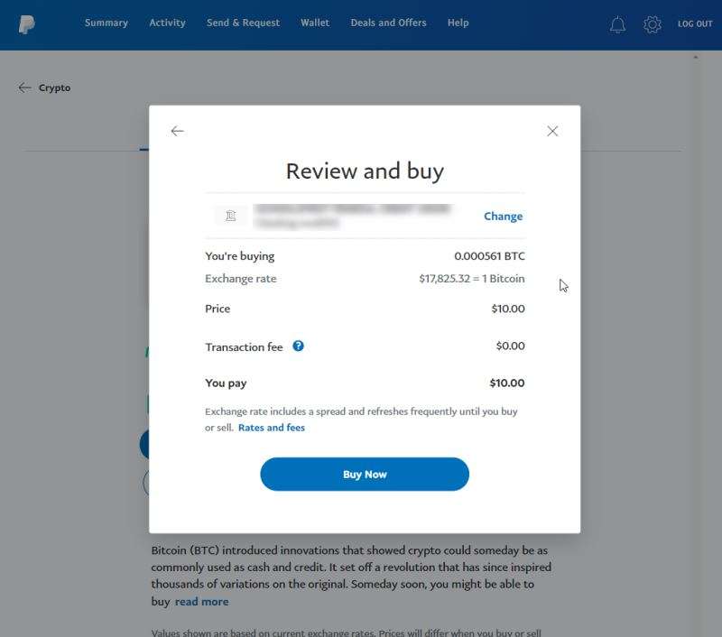 8、选择“下一步”后,检查您的购买情况。对于面向消费者的交易所来说,PayPal上的交易费用相当合理;25美元以下的交易费用为50美分,1000美元以上的交易费用为交易费用的1.5%。准备购买时,请选择“立即购买”。