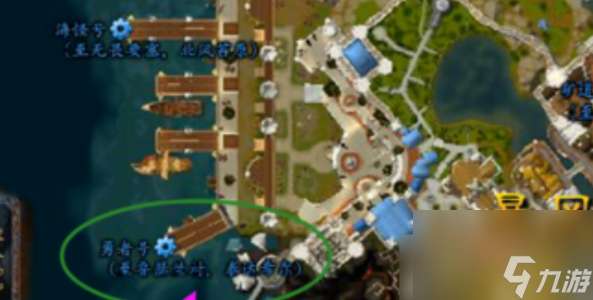 如图所示联盟玩家们回到暴风城然后走到暴风城港口,在地图左下角港口位置坐船到达纳苏斯鲁瑟兰村。