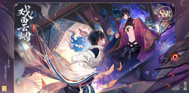 SSR画灵[戏面云烟]属特殊联动画灵,具备获取时台词特别展示;突破后具备横幅卡面、[流光]效果,可设为登录界面。