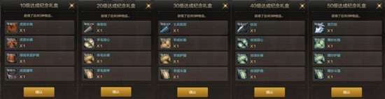 1、前期装备 角色在达成10,20,30,40,50级时,会分别获得等级达成礼盒,打开礼盒可获得对应的蓝色装备。 在30级之前,我们只需要携带蓝色装备就可以了,因为在前期,这些初级装备完全可以碾压任何普通图。 当然,通过达成等级任务获得的稀有装备可以即时替换掉身上的高级装备。让升级路上更加有效率!